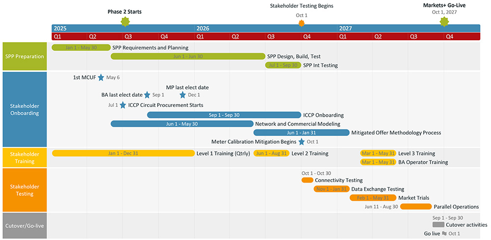 Three other decision dates have been set as deadlines for balancing authorities, transmission providers or market participants if they want to be part of the initial market launch: Sept. 1 (BAs), Oct. 1 (transmission providers) and Dec. 1 (MPs).