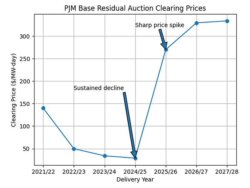 When long-term infrastructure needs are forced into short-term market structures, volatility follows. Even modest changes in supply or demand — plant retirements, transmission constraints or revised load forecasts — can trigger dramatic price swings as the market attempts to correct years of underinvestment in a single auction. The result is uncertainty for consumers and developers alike.