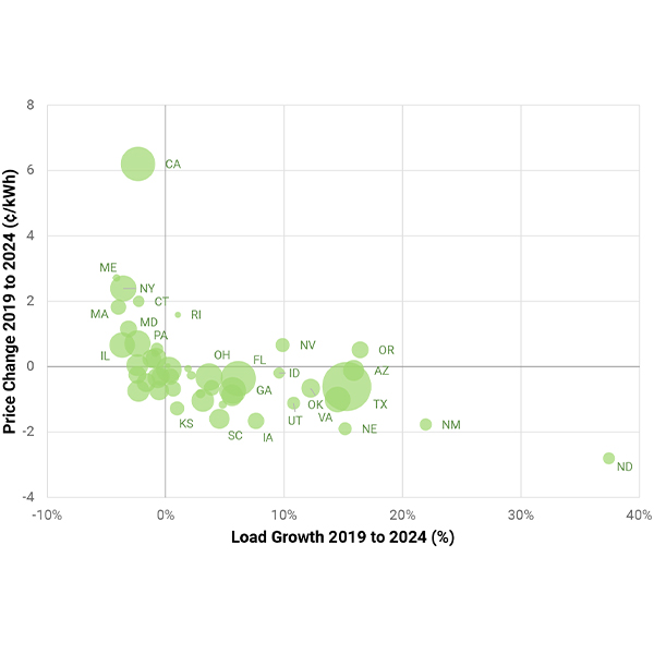 If the incremental costs of serving the new loads are below the current average costs, new demand can actually lower average retail rates as the system costs are spread across a wider base, the report concludes.