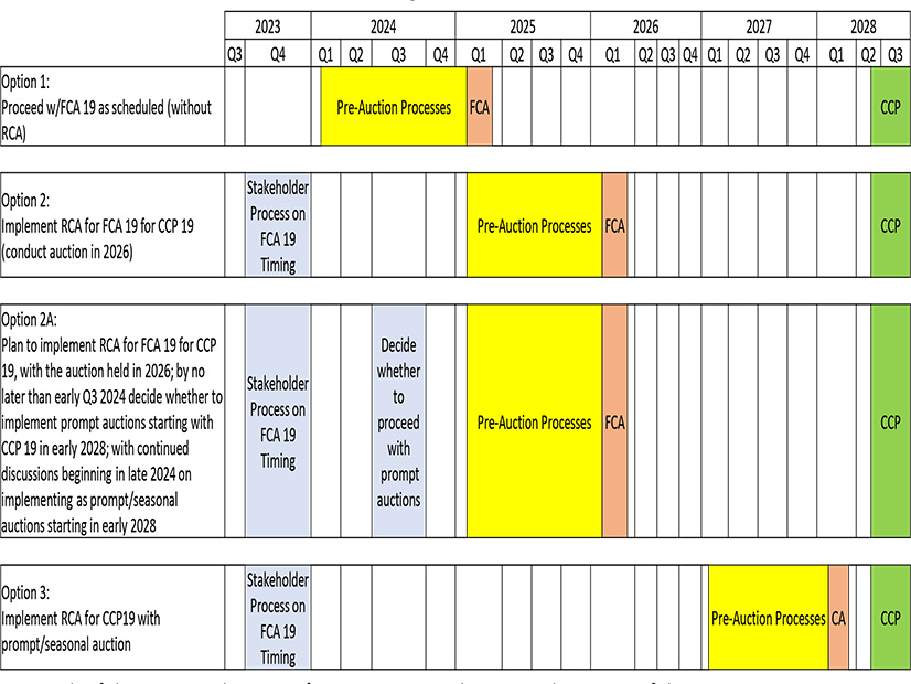 2a. plan to implement RCA in FCA 19 with the auction held in 2026, but decide by Q3 2024 whether to instead move to a prompt and seasonal auction held in 2028.