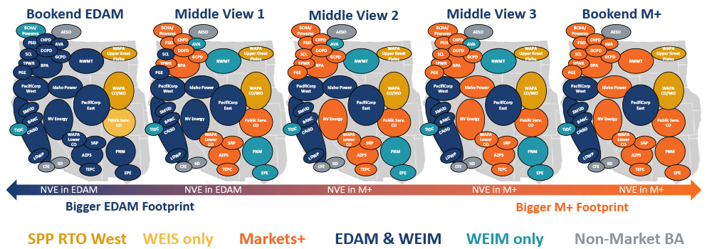 “NVE benefits tend to be higher when it is central to the market and facilitates transfers within the market (e.g., in Bookend M+ case, in which NVE facilitates transfers between the PNW and SW; or Bookend EDAM case, in which NVE facilitates transfers between CAISO and the SW),” Brattle said.