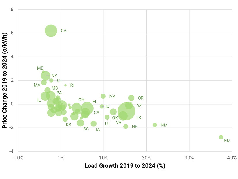 If the incremental costs of serving the new loads are below the current average costs, new demand can actually lower average retail rates as the system costs are spread across a wider base, the report concludes.