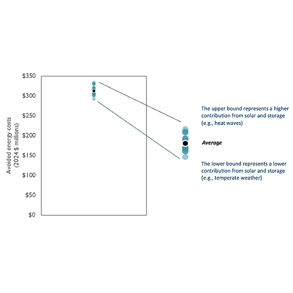 A new report estimates that solar and battery storage growth in New England between 2025 and 2030 could reduce wholesale energy costs across the region by about $684 million annually by 2030.