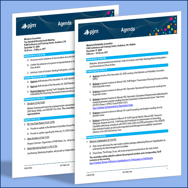 PJM's Markets and Reliability Committee will be asked to endorse a slew of manual revisions during its next meeting.