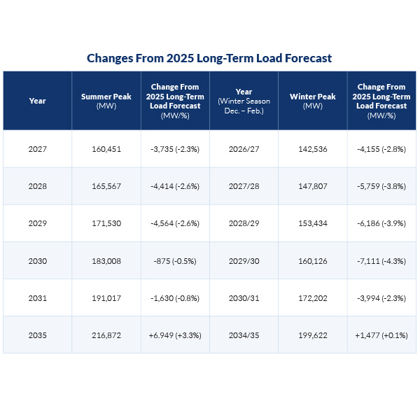 PJM's 2026 load forecast has decreased the amount of growth expected for the following six years owing to a more pessimistic view of the volume of large loads, economic growth and electric vehicles.